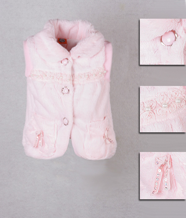 Для девочки. Основной материал: искусственный мех. Вид рисунка: вышивка, бусины. Подкладка: флис. Детали: на пуговицах спереди, с карманами. Возраст ребенка: от 2,5 до 4 лет. Уход: Рекомендуется машинная стирка при 30 градусах