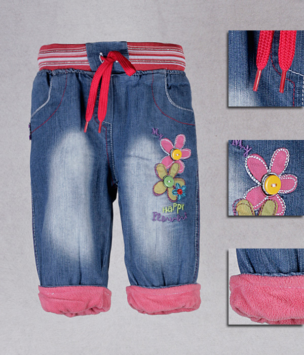 Для девочки. Основной материал: джинс. Подкладка: флис. Вид рисунка: вышивка. Детали: пояс на резинке со стяжками, с карманами, низ с отворотами. Возраст ребенка: от 6 мес. до 1,5 года. Уход: Рекомендуется машинная стирка при 30 градусах